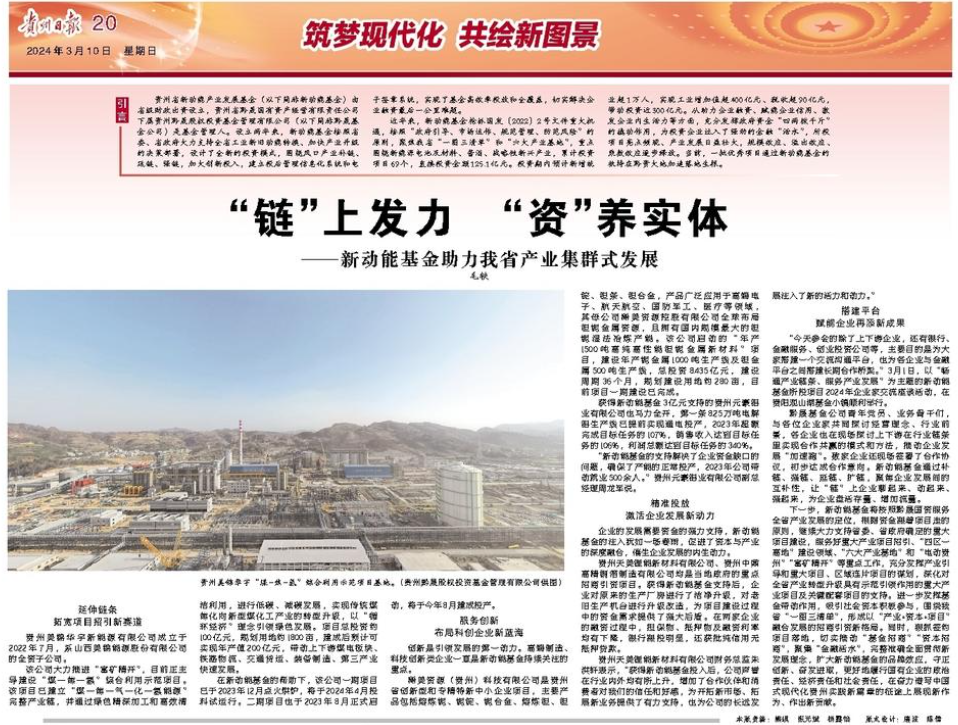 新動(dòng)能基金助力我省產(chǎn)業(yè)集群式發(fā)展【貴州日?qǐng)?bào)】